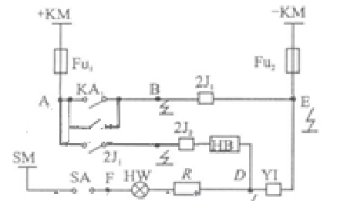 如圖1所示,當(dāng)圖中的A點(diǎn)和B點(diǎn)一同接地,相當(dāng)于A、B兩點(diǎn)通過大地相連接起來,中心繼電器2J1動作生成斷路器的跳閘。同理,當(dāng)圖中的A點(diǎn)和C點(diǎn)一同接地,或圖中的A點(diǎn)、D點(diǎn)一同接地均或許生成斷路器的跳閘。