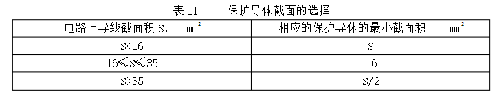 6當(dāng)運(yùn)用直流電源設(shè)備構(gòu)成作為維護(hù)電路部件時(shí),其導(dǎo)線截面積按表11選取,也可通過(guò)計(jì)算辦法選取。